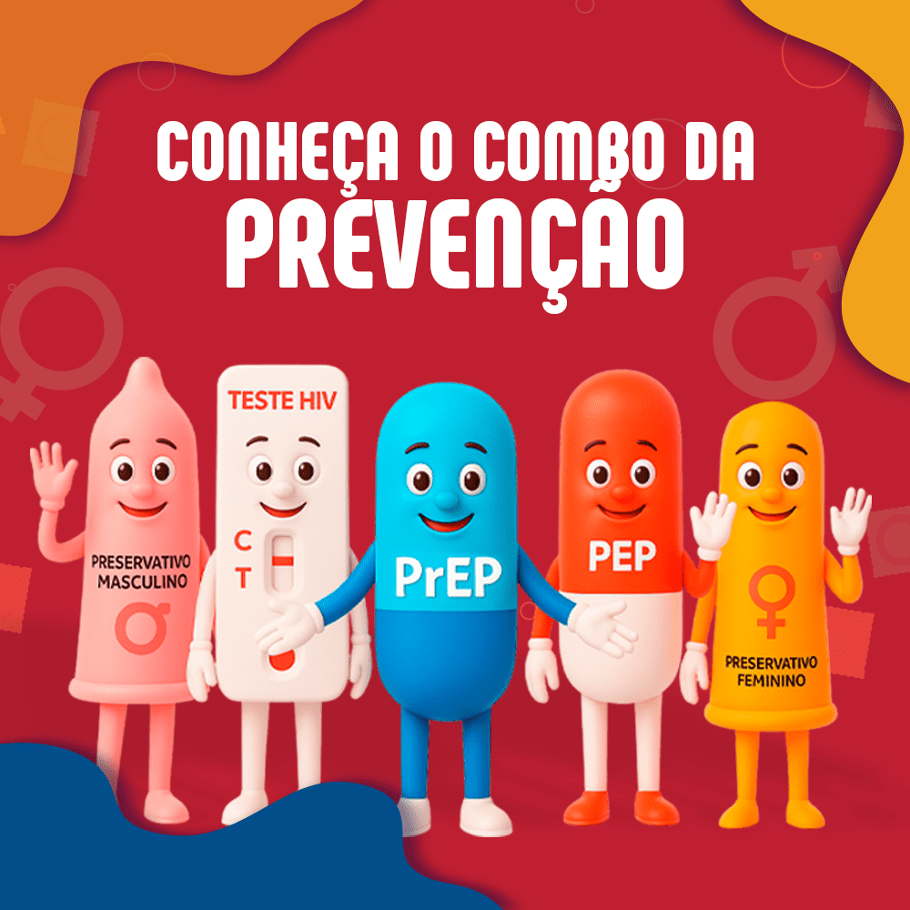 A prevenção combinada reúne diferentes estratégias de proteção contra o HIV, como PrEP (Contínuo, Sob Demanda e Injetável) , PEP, preservativos e autoteste. Esses métodos podem ser usados de forma individual ou combinada, respeitando a sua realidade e escolhas.